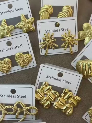 304 Stainless steel triangle Pentagram Flower Electroplating Stone Free Golden Plated Elegant Style Waterproof Non-Tarnish Ear Studs